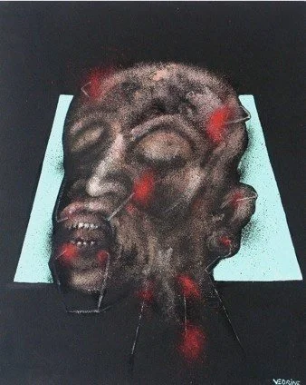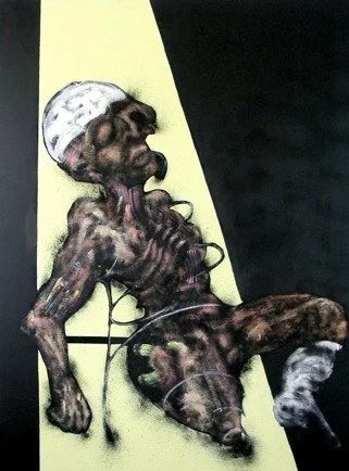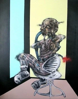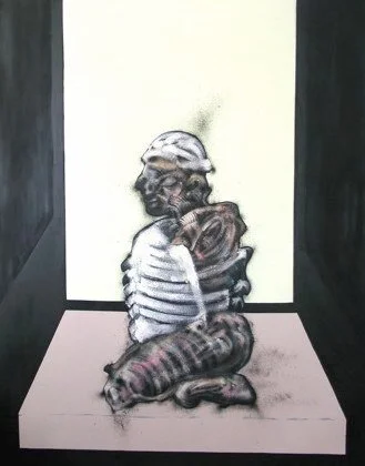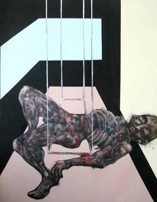This series of paintings demonstrates themes of the human condition, the emotions, contradictions, and anguish felt differently by each of us in our interior existence. At first glance, the situation of the figures inside of the cold, impersonal, and clinical environment seems disturbing. The pastel colors, and geometric decor of the room should evoke in us a feeling of peace. They soothe the psychological pain, which is as destructive as physical pain; however, this soothing is not quite complete.